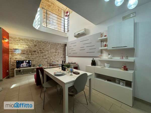 Appartamento arredato borgo antico Bisceglie Nel borgo antico di Bisceglie a 40 mt. Dal porto turistico, fittasi appartamento arredato e ristrutturato, di 80 mq. , situato al primo piano di un caratteristico stabile antico! L’appartamento é disposto su due livelli con: ambiente unico pranzo soggiorno , bagno con doccia , camera per ospiti e due ripostigli al primo livello; camera letto , bagno padronale, armadio a muro e salottino al secondo livello! L'appartamento é totalmente ristrutturato,arredato, rifinito , climatizzato ,con parquet nella zona notte e dipone di : cucina a vista completa di elettrodomestici , divano letto, impianto luci a risparmio energetico, lavasciuga, microonde, tv 32 pollici, porta blindata,inferriate e zanzariere ai due balconcini, doppi vetri, citofono. Contratto transitorio. Richiedesi redditi documentabili! Canone mensile €550,00 n. B. Solo contatto telefonico.