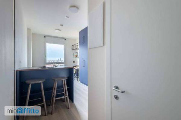[ita] Disponibile da: 23 03 2026 Mensilità minime prenotabili: 3 Mensilità massime prenotabili: 12 Per prenotare l'annuncio clicca sul bottone "prenota Qui" [eng] Available from: 23 03 2026 Minimum months rental: 3 Maximum months rental: 12 to book the listing click on the button 'book here' nb: Only semester or yearly bookings are available at the indicated rates (from 1 January to 30 June or 31 July August, or from 1 September to 31 August of the following year). If you need a shorter stay, feel free to contact us to receive a customised quote. Accessible Studio High Each of our rooms is furnished with everything you need to make your university years an unforgettable experience. We offer you a comfortable environment, in which to feel safe and forge relationships that will accompany you throughout your studies and beyond. The Accessible Studio High is a studio with private bathroom located on floors 9-12 of the building. The size of the main room is around 19 square meters. The room is furnished with a 120 cm bed, a wardrobe and storage shelves, a study area with desk and chair and finally a living area with table, two stools and a kitchen with sink, refrigerator, induction hob and a microwave oven. The heating is centralized and the room is equipped with a practical thermostat to manage the internal temperature. The private bathroom measures approximately 4 square meters and is equipped with a comfortable shower. What will you find in your room? - 120 cm bed. - Desk with study lamp - Desk chair - Wardrobe - Dining table with two stools - Kitchen with sink, induction hob, microwave oven, refrigerator and cabinets cupboards for dishes - Centralized heating and cooling with temperature in the room adjustable by thermostat - Bathroom with shower - Cleaning service once a week The room is not equipped with sheets, towels and everything needed (dishes, cutlery, pot&pans, ) for the kitchen. What we offer All-Inclusive utility bills All rooms en-suite Weekly room cleaning Free Wifi and broadband throughout 24h on-site team Free on-site gym Great communal spaces Are you looking for accommodation in Bologna? We offer the perfect room for you! Become part of our great community and live your university years as best as possible. Choose one of our bespoke en-suite studios. Spend time at a variety of vibrant communal spaces in a unique micro location, surrounded by parkland, a true gem within the city. The residence is one of the tallest buildings in Bologna, offering unparalleled views across the medieval city centre from the top floor sky lounge. Enjoy the sunsets from our roof top dining area and take the best selfies with your new friends. The property is located within a few minutes’ walk from the old University quarter, the new faculties and close the city centre. To name a few of the closest faculties: Faculty of Economics (8 min by bike) Alma Mater Studiorum – Università di Bologna, dams, Faculty of Law, Conservatorio Giovanni Battista Martini, University of California, Selinus University of Science and Literature (9 min by bike) Faculty of Engineering, Faculty of Medicine, Brown University, John Hopkins (10 min by bike) muner Motorvehicle University (15 min walk) Dipartimento di Psicologia (16 min walk) The residence is an exclusive and sophisticated new concept of xxi century student accommodation. Our property offers fully furnished individual en-suite studios with all the facilities to enjoy your own privacy and independence. This co...