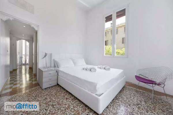 Apartment - Via Cesare Battisti - Bologna a few steps from Piazza Maggiore, 160 sqm apartment is located at the 2Nd floor (with elevator). It consists of a spacious living room, a dining room, a a studio, a bedroom, a sitting area with sofa bed, a kitchen and two bathrooms. Guests have access to a fully equipped kitchen and are provided with bed linens and towels. Upon arrival, our staff will be waiting at the apartment to explain how everything works and to hand over the keys. During your stay, our staff is available to address any requests or concerns. The apartment is located on the second floor of one of the most elegant mansions that embellish the very central, historical street of Via Ugo Bassi. We are perfectly located with just a stone's throw away from the eventful Piazza Maggiore. The entire condominium has been recently renovated whilst keeping the atmosphere of the Art Nouveau building intact, which at this very moment is amazingly fresh and modern. There are no architectural barriers within and the apartment is comfortably accessible by elevator. The apartment features stylish, original Venetian laminate throughout and it's characterized with a stunning Bolognian traditional ancient palace design and finish. Each room conveniently has its own air-conditioning system. The atmosphere and environment resemble that of a contemporary New York photography studio; this space has strategic white walls which bring out the new-age exclusive furnishings which are accredited to the designer label of Gavina. The large windows allow the space to be illuminated at all times, as it faces the quaint, medieval landscape of the historical heart of Bologna. Upon entering you will find yourself in the large living area, which is composed of three elegant rooms. The first dining room space features an eye-catching pop scene, where a classic boardroom table and its comfortable seating are surrounded by avant-garde mannequins that stand among piles of art and design publications. The second room is devoted to the relaxation of the guest. On the black lacquered console, the multimedia system consists of a 50" tv, with the possibility of 3d viewing (using the supplied glasses), and a beautiful Bluetooth speaker for music. In addition to a comfortable sofa bed (120 x 200 cm), the living room is equipped with an additional sofa for two seaters and a glass table for 6, with elegant seating. The living room also offers a third room, more intimate and dominated by white colour, whence, along with a chest of drawers, there is a sofa bed (140 x 200 cm) made of dark gray fabric and a designer coat rack. The evening area is composed of two contemporary bedrooms, one has a double bed, a 32" tv, a clothes rack and a bedside table; the second bedroom is furnished with two single beds (which can be joined together upon request) and a big wardrobe. The kitchen is furnished with a breakfast table for 2 people. The wall cabinets are beautifully custom-made and they house the dishwasher, refrigerator and a washing machine. You have a choice of 2 hotplates and a microwave grill at your disposal or preference. - Centralized heating and split air conditioning in each room - 50" tv and Bluetooth speaker - The furnishings of the apartment are signed by the Italian stylist and designer Gavina - High quality finishes and latest generation fixtures - The apartment is equipped with a large 100 liter boiler - The apartment is equipped with washing machine, drying rack and iro...