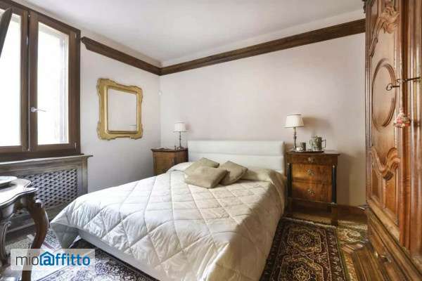 [ita] Disponibile da: 06 08 2026 Mensilità minime prenotabili: 1 Mensilità massime prenotabili: 12 Per prenotare l'annuncio clicca sul bottone "prenota Qui" [eng] Available from: 06 08 2026 Minimum months rental: 1 Maximum months rental: 12 to book the listing click on the button 'book here' cin: it037006b4i24d9yxa Charming apartment of about 130 sqm, located in a historic building in the heart of Bologna, a short walk from the University of Bologna and Piazza Santo Stefano, one of the most beautiful squares in Italy. Guests have access to a fully equipped kitchen and are provided with bed linens and towels. Upon arrival, our staff will be waiting at the apartment to explain how everything works and to hand over the keys. During your stay, our staff is available to address any requests or concerns. The first architectural element to catch the eye of the guests is the magnificent walnut double door, with carved lintel, which grants access to the apartment. The entrance leads directly into the beautiful dining room, whose walls are decorated with old wood paneling in solid walnut or finished, like the rest of the apartment, with Venetian plaster in shades of cream. The resulting combination creates an extremely warm and welcoming atmosphere, a place to relax or work in peace. The dining room is undoubtedly dominated by a magnificent table from the 19th century, engraved with floral motives and able to accommodate up to 6 people. The rich golden mirrors on the walls, made with the ancient technique of mercury, are in the typical liberty style, while the large chest of drawers behind the table dates back to the 17th century. The bookcase placed in front of the table contains a flat-screen tv 52"(with 3d glasses provided) and the control centre of the audio system of the apartment (aux cable connection), which is equipped with amplifiers in each room. The spectacular swivel design lamp can be used to shed light both on the table and in the living room. The real living area lies behind the dining room and consists of one sofa Roche Bobois (it converts into a comfortable double bed 200 x 160 cm). Next to it you can find a wonderful Florentine “Trumeau” dated 1715, which proposes a mix of past and future that characterizes the whole property. Right next to this relaxation corner, there is the impressive kitchen. It is a wonderful kitchen designed by Archeo, fully equipped and provided with every tool, including a Nespresso coffee machine. The cooking area that stands out since it is made of a composite smooth white material, is longer than 3. 5 meter and it allows you to indulge in the preparation of many different recipes. This kitchen is a real must for fans of the kitchen who visit the capital of Emilia. Access to the sleeping area is granted by a corridor leading to the rooms. The apartment has two bedrooms. The guest room is furnished with two single beds (which can be joined to form a double bed) and a custom-made closet. In the master bedroom, in front of the double bed, finished in white leather, there is an impressive wardrobe from the 17th century in Piedmont style. It is a real work of art, which belonged to a noble family and made according to the style of the fashions of the time. In particular, the brass handcrafted hinges also reflect the quality of craftsmanship made in Italy today. The master bedroom has an en-suite bathroom furnished with Murano chandeliers and handmade pottery by Etruria. Also the second bathroom has the same...