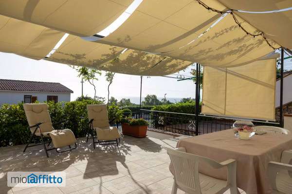 The apartment is located on the ground floor of a townhouse complex and consists of two bedrooms, a living area with a kitchen and a bathroom. The home also features a beautiful 35-square-meter terrace, which becomes the main living area from spring to autumn. The covering curtains make it shady during the day and protected from humidity in the evening. It is equipped for dining, relaxing on comfortable deck chairs, and has a very convenient shower. The master bedroom is furnished with a double bed, while the second bedroom is equipped with a queen-size loft bed and a queen-size sofa bed. The house is typically used year-round, equipped with air conditioners heat pumps, and everything you would usually find in your own home. The elevated position ensures a great view on the landscape. The area is very quiet (except in July and August) and isolated but the nearest town is only 3 km away. The internet connection is lte so it's not extremely fast but it's very stable (no problem with video calls and usual cloud work). The nature is amazing in the area, between the mountains and the sea, and the best way to explore it is a bike (you can rent electric bikes in town). The apartment is 1 hour far from Lamezia Terme Airport but the town also has a train station. The sofa bed can be replaced with a desk if you're staying more than 3 months. We will provide a rental agreement and, if you're applying for a dn Italian Visa i can help you with the procedure. Ntraduci la descrizione dell'annuncio in italiano n nhousinganywhere è la più grande piattaforma europea di affitti per alloggi, con oltre 160. 000 proprietà tra camere, monolocali e appartamenti. Permette di prenotare case online in modo sicuro prima del trasferimento, offrendo supporto dedicato e tutela durante l'intero processo di prenotazione.