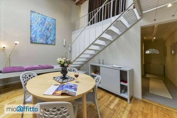 [ita] Situato al terzo piano, senza ascensore ( 53 scalini), di un palazzo collocato in via delle Conce. Questa zona è ottima per chi cerca una posizione molto centrale a due passi da Santa Croce e dal delizioso mercato di s. Ambrogio. La zona è ricca di ristoranti multiculturali ed è famoso per la movida notturna. 3 camere da letto in stile moderno (140 mq) può ospitare fino a 6 persone ed ha 2 bagni di cui uno senza wc, oltre ad un box doccia sul soppalco. L'ospite verrà accolto dal salotto d'entrata la cui finestra si affaccia su via delle Conce. Da qui un corridoio si snoda e guida fino al secondo salotto, sulla destra, fornito di tv a schermo piatto e comodi divani. Tornando in corridoio sulla sinistra si trova il primo bagno completo. A dritto si scopre l'ampia sala da pranzo che collega le parte restanti dell'appartamento: la cucina ben attrezzata, le due camere da letto (una matrimoniale ed una doppia) ed il secondo bagno completo di box doccia. Dalla sala da pranzo si possono infine salire delle scale che portano al soppalco che ospita la terza, ed ultima, camera da letto matrimoniale. Qui vi è un grande spazio ricavato dal sottotetto che può servire per appendere gli abiti e mettere le valige, un ripostiglio con lavatrice e lavandino ed un pratico ed ampio box doccia. Tutte le camere danno sugli interni e sono silenziose in quanto solo il salotto iniziale si affaccia sulla strada. Le opere esposte sono di artisti contemporanei toscani suscettibili di cambiamenti in rapporto ad esigenze espositive. Riscaldamento: autonomo. Aria condizionata: 3 split totali: uno in ogni camera da letto. [eng] Located on the third floor, without elevator (53 steps), of a building on via delle Conce. This area is perfect for those seeking a central location just a few steps away from the church of Santa Croce and the delightful open market known as "sant'ambrogio". Here you will find many multicultural restaurants and a lively nightlife. The apartment (140 sq. Mt 1506 sq. Ft) has 3 bedrooms, can host up to 6 people and has 2 bathrooms ( one is without toilet) plus a sink and a shower on the loft. The guests will be welcomed by a nice living room whose window overlooks via delle Conce. From this room a corridor will lead you to the second living room, first door on the right, equipped with flat screen tv and comfortable sofas. Back in the corridor if you open the door on the left you will find the first complete bathroom. At the end of the corridor there is a spacious dining room from which you can reach the other rooms of the first level: the fully equipped kitchen, the other two bedrooms (one with double bed and the other one with twin beds) and the second bathroom with shower. From the dining room you can climb a flight of stairs that leads to the loft that is home to the third, and final, bedroom with double bed. Under the roof you will find a large space that can be used to hang your clothes and to store your suitcases. On this level there is also another little room with washing machine, sink and a spacious shower. All rooms overlook an internal couryard therefore they are pretty quiet. The apartment's paintings are made by contemporary artists from all over Tuscany. They could change depending on the exhibition agreements taken with the owner. Independent heating. Air conditioning: a total of 3 splits: one in each bedroom.