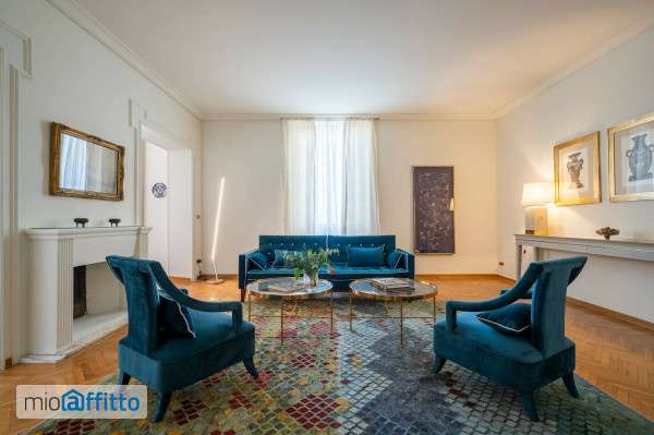 Florence City Centre Prestigious Flat with Double Garage Located in an elegant building with concierge service on a quiet and peaceful street, this stunning furnished apartment is available for rent on the first floor (with elevator). Covering approximately 250 sqm across two levels, the property has been recently renovated and exquisitely furnished. The lower level features a beautiful living room with a dining area, a large fully-equipped kitchen, one bedroom, and two bathrooms. A stylish staircase leads to the upper level, which hosts a private cinema room, three bedrooms, two bathrooms, and a spacious, functional laundry room. The property includes a rare, large garage with a double parking space. This residence is the ideal solution for clients seeking a prestigious temporary home in one of Florence's most beautiful areas. It is perfectly served and easily accessible for those commuting in and out of the city or reaching Santa Maria Novella station. Request: €8,000 per month, plus condominium fees and utilities. Florence Centre – à proximité de l’école Française Demeure de Prestige avec Double Garage au cœur de Florence, à deux pas de l'école française, au sein d'un immeuble de standing avec service de conciergerie situé dans une rue calme et paisible, superbe appartement meublé à louer au premier étage avec ascenseur. D'une surface d'environ 250 m² répartis sur deux niveaux, ce bien a été récemment rénové et décoré avec une grande élégance. Il se compose comme suit : au niveau inférieur : un beau salon avec salle à manger, une grande cuisine entièrement équipée, une chambre et deux salles de bains. Au niveau supérieur : relié par un bel escalier, on trouve une salle de cinéma, trois chambres, deux salles de bains ainsi qu'une buanderie spacieuse et fonctionnelle. Un grand garage avec place de parking double complète cette propriété d'exception. Cette demeure représente la solution idéale pour une clientèle à la recherche d'une résidence temporaire de prestige dans l'un des plus beaux quartiers de Florence. Idéalement desservie, elle est parfaitement accessible pour se déplacer en ville, en dehors de la cité ou pour rejoindre la gare de Santa Maria Novella. Loyer : 8 000 € par mois (hors charges de copropriété et consommations). Firenze centro, affittasi prestigioso appartamento recentemente ristrutturato e pregevolmente arredato, situato al primo piano con ascensore di un palazzo signorile con portiere in zona tranquilla e silenziosa. L'appartamento di circa 250 mq è distribuito su due piani e comprende al livello inferiore un bel salone con sala pranzo, un' ampia cucina attrezzata, una camera e doppi servizi mentre al piano superiore collegato da una bella scala troviamo la sala cinema, 3 camere con doppi servizi ed una ampia e funzionale lavanderia. Completa la proprietà un'altro punto di forza dell'immobile e cosa rara in centro e cioè ampio garage con posto auto doppio. L'immobile rappresente la soluzione ideale per una clientela in cerca di una residenza temporanea di prestigio in una delle zone più belle di Firenze ottimamente servita e soprattutto ben accessibile per chi deve muoversi dentro e fuori dalla città o raggiungere anche a piedi la stazione di Santa Maria Novella. Richiesta € 8. 000 al mese oltre alle spese di condominio e delle utenze.