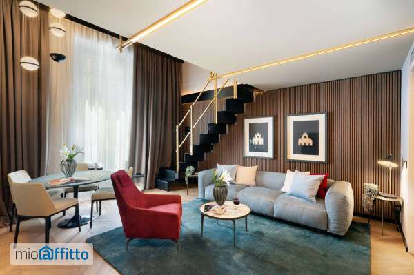 Via Cavour in palazzo storico al piano terreno rialzato, appartamento in ottime condizioni con rifiniture di lusso, disposto su due livelli completamente arredato. L'appartamento è composto da zona giorno con cucina attrezzata, soggiorno con divano letto, al piano superiore troviamo la zona notte con camera matrimoniale e servizio. Riscaldamento, condizionamento ad aria. Affitto transitorio.