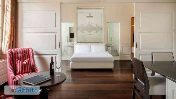 [ita] Disponibile da: 07 03 2026 Mensilità minime prenotabili: 3 Per prenotare l'annuncio clicca sul bottone "prenota Qui" [eng] Available from: 07 03 2026 Minimum months rental: 3 to book the listing click on the button 'book here' ita a pochi passi dal Duomo, questo raffinato bilocale di 55 mq è la scelta ideale per due ospiti in cerca di comfort e charme. Gli spazi, progettati con cura, si articolano in due ambienti comunicanti ma perfettamente separabili grazie a eleganti porte scorrevoli a scomparsa, che dividono l’ampia zona notte dal luminoso living. La camera matrimoniale è accompagnata da un comodo guardaroba e un bagno in marmo bianco e alabastro, dotato di bidet, accappatoi, asciugamani e una doccia cromoterapica con vasca idromassaggio. La zona giorno, spaziosa e accogliente, comprende un salotto, un tavolo da pranzo e una cucina a isola completamente attrezzata con frigorifero, lavastoviglie, forno, macchina da caffè, bollitore elettrico, tostapane e utensili. Completa l’alloggio una dotazione moderna che include tv satellitare a schermo piatto, filodiffusione, aria condizionata, riscaldamento, minibar e connessione Wi-Fi gratuita. La struttura ospita diversi appartamenti, ciascuno unico nel suo genere per palette, materiali e arredi, pur mantenendo costanti di pregio come i camini, i pavimenti in zebrano e teak e le boiserie in legno laccato. Ogni alloggio riflette il lusso e l’artigianalità fiorentina, offrendo spazi pensati per un’esperienza indimenticabile. Nb. Soggiorni inferiori a 3 mesi sono consentiti a tariffe variabili in base al periodo. Contattaci per ricevere un preventivo. Eng Just steps away from the Duomo, this refined 55 sqm apartment is the ideal choice for two guests seeking comfort and charm. The well-designed layout consists of two interconnected spaces that can be fully separated by elegant sliding doors, dividing the spacious bedroom from the bright living area. The double bedroom is complemented by a convenient wardrobe and a luxurious bathroom in white marble and alabaster, featuring a bidet, bathrobes, towels, and a chromotherapy shower with a whirlpool tub. The living area is spacious and welcoming, featuring a lounge, a dining table, and a fully equipped kitchen island with a refrigerator, dishwasher, oven, coffee maker, electric kettle, toaster, and kitchenware. The apartment is outfitted with modern amenities, including a flat-screen satellite tv, sound system, air conditioning, heating, minibar, and free Wi-Fi. The property also offers several other apartments, each uniquely designed with different color schemes, materials, and furnishings. All accommodations share luxurious features such as fireplaces, zebrawood and teak flooring, and lacquered wood paneling. Reflecting Florentine craftsmanship, every space is designed to provide a truly unforgettable experience. Nb: Stays of less than 3 months are allowed at variable rates depending on the period. Please contact us to receive a quote.