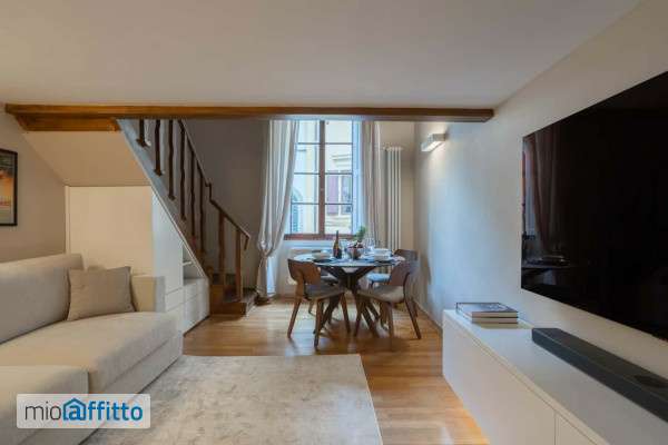 [ita] Disponibile da: 09 03 2026 Mensilità minime prenotabili: 1 Per prenotare l'annuncio clicca sul bottone "prenota Qui" [eng] Available from: 09 03 2026 Minimum months rental: 1 to book the listing click on the button 'book here' Benvenuti in un appartamento davvero unico nel cuore di Firenze, situato al piano terra di un'antica chiesa sconsacrata, oggi splendidamente ristrutturata con gusto e dotata di tutti i comfort moderni. Zona giorno: un ampio salone con divano ad angolo e tv a schermo piatto, impreziosito da una parete decorata con locandine di film vintage, che creano un'atmosfera accogliente e originale. è il luogo perfetto per rilassarsi dopo una giornata trascorsa alla scoperta della città. Zona pranzo: un tavolo rotondo in legno con quattro sedie, posizionato davanti a una grande finestra che lascia entrare la luce naturale e si affaccia su un affascinante vicolo fiorentino. Cucina: moderna e ben attrezzata, con piano cottura a induzione, forno, frigorifero e ampio spazio sul bancone. Il design minimalista si fonde perfettamente con gli elementi architettonici storici ancora visibili. Camera da letto: situata su un soppalco, con letto matrimoniale, travi a vista e dettagli architettonici originali, tra cui un'antica apertura circolare in pietra. Lo spazio è intimo e romantico, ideale per le coppie. Bagno: elegante e completamente attrezzato, con una spaziosa doccia, un lavandino moderno, wc e bidet. I toni neutri e i materiali di qualità garantiscono il massimo comfort. Caratteristiche aggiuntive: pavimenti in parquet, soffitti con travi a vista, mobili su misura, scala in legno, riscaldamento e aria condizionata.