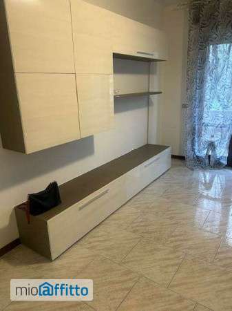 T1) Appartamento al primo piano senza ascensore: ingresso, soggiorno con balcone, cucina semi abitabile, due camere e un bagno. Ampio garage, arredato.