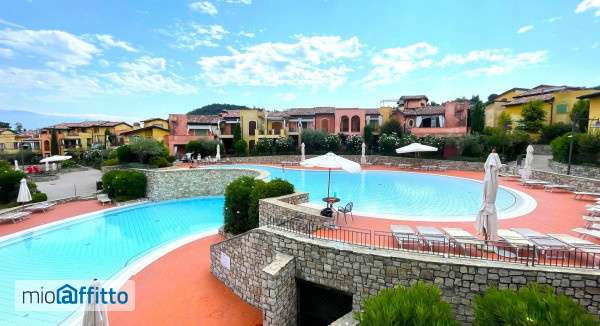 Affittasi in rinomato Resort fornito di tutti i comfort, a 2 minuti dal lago e dalla spiaggia vicino a tutti i servizi, Appartamento al piano primo ed ultimo composto da: soggiorno con cucina a vista, ampia terrazza ideale per pranzi e cene all'aperto, camera da letto, bagno con finestra oltre un soppalco adibito a camera matrimoniale con un secondo bagno. Completa la proprietà un box e una cantina al piano interrato. Arredato e corredato con gusto. Il residence dispone di 6 piscine di cui due con cascata ed una con idromassaggio, tre campi da tennis, un campo da calcetto, bar, parco giochi per i bambini, servizio di sorveglianza, portineria tutto l'anno oltre ad un ampio parcheggio esterno per gli ospiti. La posizione è strategica in quanto si trova, oltre che vicino al lago (1 km dalla spiaggia la Romantica di Manerba d g), anche vicino a tutti i servizi e al centro, facilmente raggiungibili a piedi. Affitto €. 18. 000, 00 per 12 mesi compreso di spese condominiali
