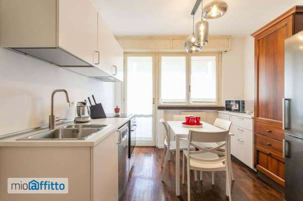 [ita] Disponibile da: 16 06 2026 Mensilità minime prenotabili: 1 Mensilità massime prenotabili: 12 Per prenotare l'annuncio clicca sul bottone "prenota Qui" [eng] Available from: 16 06 2026 Minimum months rental: 1 Maximum months rental: 12 to book the listing click on the button 'book here' [ita] Moderno appartamento con quattro camere da letto recentemente ristrutturato sito al nono piano di un palazzo con giardino a pochi passa dalla fermata della metropolitana Romolo ( mm2 - verde ) l'appartamento di circa 110mq gode di una splendida vista e risulta silenzioso e luminoso. Entrando si apre la zona giorno con divano a tre sedute, poltrona, smart tv 55 pollici, tavolo per 4 persone e da cui si accede al terrazzino. La cucina a vista è completa di frigorifero, freezer, lavastoviglie, bollitore, forno tradizionale, microonde e piano cottura ad induzione. La zona notte prevede la prima camera da letto con letto a una piazza e mezza ( 120cm ), comodino con abatjour, armadio a 3 ante e postazione lavoro con scrivania. Abbiamo poi il bagno principale, senza finestra, con ampio box doccia, lavandino, wc e bidet. La seconda camera da letto è allestita con letto a una piazza e mezza ( 120cm ) comodino con abatjour, armadio a 4 ante, scarpiera e postazione lavoro con scrivania. La terza camera da letto è allestita con letto a una piazza e mezza ( 120 cm ), comodino con abatjour, armadio a 4 ante, postazione lavoro con scrivania e da accesso al secondo terrazzino. La quarta camera da letto è allestita con letto a una piazza e mezza ( 120 cm ) , comodino con abatjour, armadio a 7 ante, postazione lavoro con scrivania e ha anch'essa accesso al terrazzino di cui sopra. Abbiamo anche il secondo bagno con box doccia, wc e lavandino. Completa l'appartamento un ampio ripostiglio lavanderia con lavatrice e asciugatrice. L'appartamento è dotato di aria condizionata in tutti gli ambienti, riscaldamento centralizzato e connessione internet ultra veloce. [eng] Contact us to receive a quote for monthly rentals! Modern four-bedroom apartment recently renovated located on the ninth floor of a building with a garden a few steps from the Romolo metro stop (mm2 - green) The apartment of about 110 square meters enjoys a splendid view and is quiet and bright. Upon entering, the living area opens up with a three-seater sofa, armchair, 55-inch smart tv, table for 4 people and from which you can access the terrace. The open kitchen is complete with fridge, freezer, dishwasher, kettle, traditional oven, microwave and induction hob. The sleeping area includes the first bedroom with a one and a half bed ( 120 cm ) , bedside table with lamp, 3-door wardrobe and workstation with desk. Then we have the main bathroom, without window, with a large shower, sink, toilet and bidet. The second bedroom is set up with a one and a half bed ( 120 cm ), bedside table with lamp, 4-door wardrobe, shoe rack and workstation with desk. The third bedroom is set up with a a one and a half bed ( 120 cm ), bedside table with lamp, 4-door wardrobe, workstation with desk and access to the second terrace. The fourth bedroom is equipped with a a one and a half bed ( 120 cm ), bedside table with lamp, 7-door wardrobe, workstation with desk and also has access to the terrace mentioned above. We also have the second bathroom with shower, toilet and sink. A large storage room laundry room with washing machine and dryer completes the apartment. The apartment is equipped with air conditioning in all room...