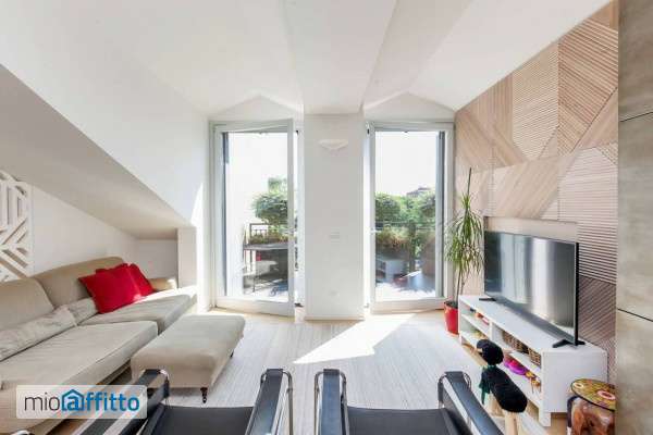 Trilocale all’ultimo piano con terrazzo e finiture di pregio – Via Andrea Ponti 3, Milano in una delle zone più vivaci e in piena evoluzione di Milano, proponiamo in locazione uno splendido appartamento di 123 mq, situato all’ultimo piano di un elegante stabile d’epoca. L’immobile si distingue per gli spazi generosi, la luminosità ed un esclusivo terrazzo di 20 mq, ideale per momenti di relax e convivialità. L’appartamento è composto da: • Ampio ingresso con mobile su misura per scarpe e giacche, mensola “Svuota tasca”, porta ombrelli, divisorio tra la porta blindata e il soggiorno. • Soggiorno luminoso con divano Depadova e parete tv di design creata da un falegname, con colonna di metallo che nasconde armadiature e porte finestre che danno accesso al terrazzo. • Cucina a vista completamente su misura con ampie armadiature, elettrodomestici moderni, cantina vini e bancone bar tra cucina e zona pranzo. • Zona pranzo arredata con tavolo e sedie Calligaris e lampada Counterbalance di Luce Plan. • Terrazzo di circa 20 mq con piante e sistema d’irrigazione smart. • Zona notte con due camere da letto:? – Camera matrimoniale con parete dotata di testata imbottita e carta da parati, cabina armadio su misura e anticamera con armadi a filo muro chiusi da ante.? – Seconda camera con scrivania e armadi disegnati dall’architetto e realizzati da un falegname. • Doppi servizi, entrambi finestrati:? – Bagno della camera matrimoniale con mobili su misura disegnati dall’architetto, doppio lavabo, doccia ampia, toilette giapponese con bidet integrato e finiture in microcemento.? – Secondo bagno con vasca da bagno e arredi su misura in microcemento. • Comoda zona lavanderia con lavatrice, asciugatrice a pompa di calore e stendibiancheria sospeso. Completamente arredato con gusto ed eleganza, l’immobile è impreziosito da armadiature su misura che garantiscono ordine, funzionalità e comfort. A completare la proprietà, una cantina di pertinenza. Ideale per professionisti e famiglie. Caratteristiche della zona: Via Andrea Ponti si trova in un contesto urbano dinamico e ben collegato, a pochi passi dai Navigli, dal campus universitario iulm e dalla mm Romolo. L’area offre un perfetto equilibrio tra tranquillità residenziale e vivacità cittadina, con numerosi servizi, ristoranti, locali e spazi verdi facilmente raggiungibili. Ottimi i collegamenti con il centro città e con le principali vie di comunicazione grazie alla metropolitana, ai mezzi di superficie e alla vicinanza alla stazione ferroviaria di Porta Genova