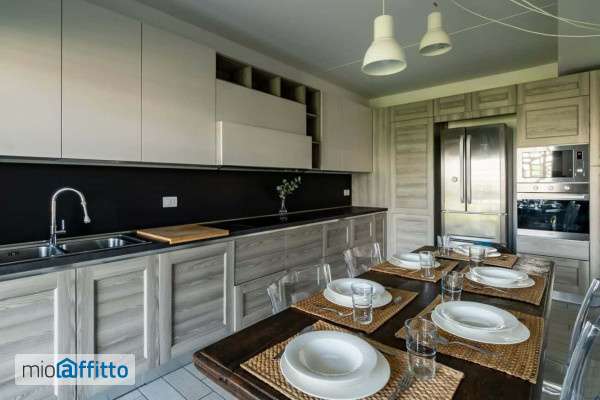 [ita] Disponibile da: 05 06 2026 Mensilità minime prenotabili: 1 Mensilità massime prenotabili: 18 Per prenotare l'annuncio clicca sul bottone "prenota Qui" [eng] Available from: 05 06 2026 Minimum months rental: 1 Maximum months rental: 18 to book the listing click on the button 'book here' la zona Questo spazioso plurilocale si trova in zona Forlanini, area ben servita da bus e tram, situati nell’arco di circa 500 metri. In questo modo risulta facile lo spostamento anche verso il centro città. Ad una ventina di minuti a piedi, invece, si trova la stazione del treno Milano Forlanini, che favorisce il movimento anche al di fuori della capitale meneghina. Tutta la zona è ben servita, infatti nelle vicinanze dell’appartamento è facile trovare ristoranti, bar, supermercati e farmacie. Nelle vicinanze - Supermercato Crai – Via Marco Fabio Quintiliano, 30 (400 metri) - Lloyds Farmacia Milano n. 9 – Via Mecenate, 8 (650 metri) - Crédit Agricole Italia. – Via Dalmazia 2 a (600 metri) Soggiorno e cucina l’ampia zona living è molto luminosa durante tutta la giornata grazie alle diverse vetrate che occupano la parete ad un lato del divano letto. Quest’Ultimo, molto spazioso, è situato davanti ad un televisore a schermo piatto. Dal soggiorno si accede direttamente alla moderna e grande cucina ben accessoriata di tutti i comfort necessari, come forno, frigorifero e forno a microonde. Nella stanza è presente anche un tavolo a sei posti, ampio abbastanza da poter ospitare ulteriori commensali. Dalla cucina è possibile raggiungere la grande terrazza, che porta anche all’area living, dotata di un tavolino ideale per le cene all’aperto d’estate e una comoda seduta su cui potersi godere un momento di relax. Camere e bagni Dal soggiorno si raggiungono le camere da letto e i bagni. La prima stanza, sui toni del bianco, presenta un letto singolo con cassettiera e ai piedi del letto è presente una spaziosa scrivania ideale per lavorare o per studiare. La seconda stanza è invece dotata di un comodo letto matrimoniale, ai lati del quale sono presenti due comodini. Nella stanza è inoltre presente un ampio armadio, ideale anche per lunghi soggiorni. La terza camera da letto, invece, presenta un ulteriore letto singolo, accanto a cui troviamo una comoda scrivania e uno spazioso armadio. L’ultima stanza presenta due letti singoli a scomparsa, due graziose scrivanie e un ampio armadio. Entrambi i bagni sono dotati di tutti i sanitari necessari, nonché una spaziosa e comoda doccia.
