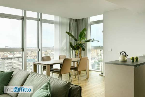 [ita] Disponibile da: 07 03 2026 Mensilità minime prenotabili: 1 Per prenotare l'annuncio clicca sul bottone "prenota Qui" [eng] Available from: 07 03 2026 Minimum months rental: 1 to book the listing click on the button 'book here' ita Questo spettacolare trilocale di 143 metri quadrati con tripla esposizione si trova in Torre Galfa, un'iconica torre grattacielo di Milano che con i suoi 103 metri di altezza costituisce un simbolo chiave della skyline della città. L'edificio è dotato di un concierge in grado di fornire assistenza continuativa. Accedendo dalla porta d'ingresso blindata, l'appartamento si apre su un ampio ingresso con accesso alla zona lavanderia e alla zona giorno, con cucina angolare a vista, living e tavolo da pranzo per 4 persone. Il salotto è arredato con doppio divano biposto di cui un divano letto con materasso matrimoniale, pouf poggiapiedi, tavolino, libreria doppia e parete con mobile tv e Smart tv. La cucina angolare con penisola è perfettamente attrezzata con cappa filtrante a ricircolo, piano cottura a induzione, frigorifero a colonna con freezer, forno elettrico e forno microonde e lavastoviglie incassata, bollitore, tostapane e macchinetta del caffè. Dall’Ingresso si accede inoltre ad un disimpegno, dotato di grande armadio, sul quale si affacciano due camere e due bagni. La camera padronale è composta da letto sommier matrimoniale con testata in ecopelle ignifuga, due comodini e lampade, un ampio armadio e uno scrittoio con cassettiera mentre la seconda camera è composta da 2 letti singoli con comodini e abat jour a muro, cabina armadio, scrittoio con cassettiera. I bagni, uno dei quali finestrato, sono dotati di lavabo d’appoggio con mobile contenitore, sanitari sospesi in uno è presente la vasca idromassaggio mentre nell’altro la cabina doccia con ampio soffione. Cassaforte presente in appartamento. L'appartamento è dotato di tutti i comfort, con finiture pregiate di ultima generazione: - portoncini blindati e porte interne Garofoli, - pavimentazione in listoni di eco parquet (tutti gli ambienti escluso i bagni) - pavimentazione in gres fine porcellanato (bagni) - rivestimenti per nicchie doccia o vasca in mosaico in pasta di vetro - tende a doppio strato (filtrante e oscurante), fondamentali data la facciata di vetro continua - impianto elettrico con illuminazione led a luce calda e sistema di comando e gestione touch - impianto di riscaldamento e aria condizionata con fancoil a soffitto e contabilizzatore individuale descrizione zona Torre Galfa è uno dei grattacieli storici della città, inaugurato nel 1959, progettata dall'architetto Melchiorre Bega. Costruita in cemento armato e con facciate continue di alluminio e vetro, possiede una struttura portante quasi completamente nascosta che le conferisce un’eleganza riconducibile alla “Sua bellezza semplice in grado di comunicare verità”, come scrisse Giò Ponti, uno dei più influenti architetti e designer milanesi. Le sue proporzioni perfette di volumi, semplicità di linee e ascendenza strutturale l’hanno resa un simbolo chiave dello skyline meneghino. L'edificio si trova in una posizione strategica, ben servita dai mezzi pubblici e collegata con il centro città e i principali luoghi di interesse. Sono infatti facilmente raggiungibili a piedi o con il trasporto pubblico il Duomo di Milano, piazza della Scala, Porta Nuova, piazza Gae Aulenti, Isola e il Quadrilatero della moda. Nella zona sono presenti numerosi ristoranti, bar e locali ideali per colazioni...