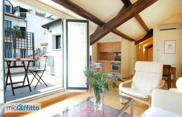 [ita] Disponibile da: 28 04 2026 Mensilità minime prenotabili: 1 Mensilità massime prenotabili: 12 Per prenotare l'annuncio clicca sul bottone "prenota Qui" [eng] Available from: 28 04 2026 Minimum months rental: 1 Maximum months rental: 12 to book the listing click on the button 'book here' [ita] Luminosa casa vacanza a Milano con una camera da letto e terrazzo, sita al quarto piano di un edificio signorile (con ascensore fino al terzo piano) nel centro storico di Milano. Questo moderno e luminoso appartamento di 65 mq, dotato di pavimenti in parquet e aria condizionata in soggiorno, si apre su un corridoio con una piccola cabina armadio sulla sinistra, il quale conduce alla zona giorno, arredata con un comodo divano, angolo tv, un tavolo da pranzo per 2 persone, un angolo cottura a scomparsa perfettamente equipaggiato e completo di lavastoviglie e accesso a una piccola terrazza arredata affacciata sul cortile interno del palazzo. La zona notte include una camera da letto matrimoniale con bagno en-suite dotato di vasca. Aria condizionata solo nel soggiorno. [eng] Contact us to receive a quote for monthly rentals! Bright one bedroom apartment for vacation rentals in Milan with terrace, located on the fourth floor of a stately building (with elevator until the third floor) in the historical center of Milan. Bright one bedroom apartment for vacation rentals in Milan with terrace, located on the fourth floor of a stately building (with elevator until the third floor) in the historical center of Milan. This modern and bright 65 sq. Mt apartment, fitted with parquet flooring and air conditioning in the living room, opens up onto a corridor with a small walk-in closet on the left, leading to the day area, furnished with a comfortable couch, a tv corner, a dining table for 2 people, a fully equipped hideaway kitchen corner complete with dishwasher and the access to a furnished terrace overlooking the inner courtyard of the building. The sleeping area includes a double bedroom with double bed and en-suite bathroom with bathtub. Air conditioning only in the living room.
