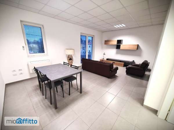 In pieno centro, comodo a tutti i servizi e le comodità, proponiamo alloggio di circa 90 mq per locazione transitoria (contratto max 12 mesi - no residenza). Dotato di ingresso indipendente, su stabile di sole 4 unità complessive, internamente si compone di ingresso, ampio soggiorno di 32 Mq, cucina abitabile, 2 camere matrimoniali (entrambe da 15 Mq), terrazza, disimpegno e bagno. Completamente arredato con mobilio nuovo: presenti n. 2 materassi matrimoniali, lavastoviglie, forno, frigo, freezer, piano a induzione, aria condizionata ed allarme. No gas, solo energia elettrica. Posto auto per n. 1 auto all'interno della proprietà, no garage. Max 2 persone, referenziate con redditi dimostrabili. Non sono ammessi animali. Per info e o visite inviare mail a con i seguenti vs dati: - Nome e cognome; - Recapito telefonico; - n. Persone; - Reddito e tipologia di contratto di lavoro (o ral nel caso di liberi professionisti p. Iva). Verrete da noi contattati per eventuali visite in loco.