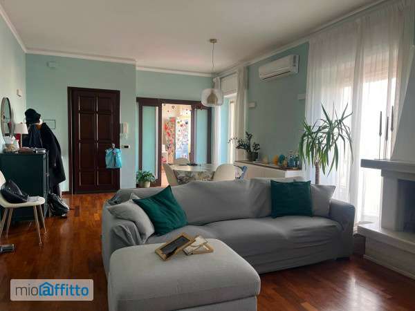 Ubicato in tranquillo parco custodito, affittiamo a persone referenziate, con adeguata capacità reddituale, luminoso appartamento al 5° piano con ampia veduta Flegrea di 100 mq, composto da salone doppio con camino, cucina, due camere da letto, due bagni e piccolo vano lavanderia. L'appartamento è dotato di due balconate ed è munito di caldaia autonomo a gas metano. L'appartamento ha diritto ad un posto auto a rotazione (due anni su quattro al costo di €80 mensili).
