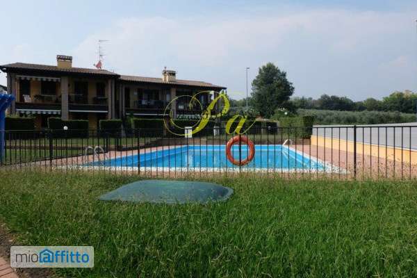 Rif. L 876 Per informazioni telefonare al 339 3098315 bilocale al piano primo con terrazzo esposto est, ubicato in un piccolo residence con prevalenza prime abitazioni e dotato di piscina, prossimo alla rotonda di Manerba, adiacente il Gardagolf di Soiano. L'appartamento è molto ben tenuto ed arredato. Disposizione: ingresso da vano scala per due unità, soggiorno, angolo cottura completo con lavastoviglie, terrazzo, disimpegno, camera matrimoniale molto ampia, bagno finestrato con doccia e lavatrice. Si può parcheggiare l'auto o più di una negli ampi spazi adibiti a posti auto del residence posti nell'immediata vicinanza dell'ingresso. Vi sono spazi verdi ricreativi e campetto beach volley. Contratto transitorio annuale, rinnovabile. Le spese condominiali sono già incluse nel canone di € 530 mese. Per favore leggere molto bene il seguito: non sono ammessi animali di nessuna natura, tassativo. La presente proposta e' rivolta solo a referenziati con busta paga da lavoro a tempo indeterminato e o reddito dimostrabile. E' sconsigliabile a famiglie composte da piu' di 2 persone e o con bambini, vista l'esigua metratura. Pregasi vivamente di non telefonare chi non si identifica nella presente descrizione per non perdere tempo entrambi. Grazie. Per informazioni telefonare al 339 3098315