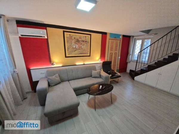 Appartamento ristrutturato ed ammobiliato. Cucina nuova con piano cottura ad induzione, forno elettrico, colonna frigo, lavastoviglie e forno microonde. Una camere da letto matrimoniale ed un salone comunicanti attraverso scala in legno, con wifi e smart tv satellitare in ogni camera, un bagno con box doccia, lavatrice e ferro da stiro, condizionatori d'aria fredda e calda in ogni camera. Cantinola per attrezzi, bici, moto. Non adatto ai bambini per presenza di scala interna. Libero e disponibile non c'e' il garage e o posto auto: Parcheggio su strada su strisce bianche. Utenze escluse (acqua, luce, gas, spazzatura, wifi). Locazione solo per uso abitativo: no b&b - no uso turistico. Max due persone, consigliato. No animali domestici richiesta referenze: buste paga.