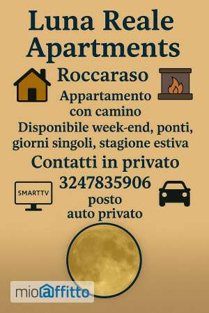 Trilocale con cucina attrezzata, 2 camere, 1 bagno con doccia, max 6 posti letto, camino e terrazza, posto auto privato coperto. Brevi o lunghi soggiorni Per ulteriori informazioni e foto contattare il profilo instagram : @luna_Reale_Apt o visitare il sito: Lunareale. Com