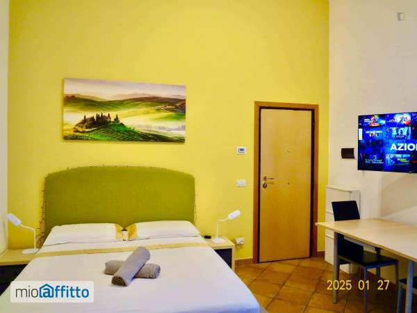 [ita] Disponibile da: 04 06 2026 Mensilità minime prenotabili: 1 Per prenotare l'annuncio clicca sul bottone "prenota Qui" [eng] Available from: 04 06 2026 Minimum months rental: 1 to book the listing click on the button 'book here' Reach eief in 3 min on foot, la Sapienza University in 20 min, luiss in 30 min from this cosy studio apartment located Rome center. Apartment freshly painted in 2025. A spacious bedroom with queen size bed with Aloe Vera Memory Foam Mattress, brand-new Smart tv 2024, brand-new air-conditioner 2024, fully equipped kitchenette with Microwave oven with grill brand-new 2022, fridge brand-new 2021, private ensuite bathroom with shower, brand-new washing machine 2025. 1 towel-1 bedsheet set, basic kitchen supplies and detergents provided, to ensure a wonderful start of your stay. Access also to an ironing board, ironing machine, vacuum cleaner. Nearby restaurants, coffee shops, supermarkets, market hall, ice-cream shops! All main attractions can be reached easily on foot. Admin fee of 85 euros paid at the check-in and a final cleaning fee of euro 50. [Cancellation Policy] Your 1St rent will be 100% refunded if you cancel up to 60 days before the contract start date or you'll get a 50% refund if you cancel up to 30 days. [Politica di Cancellazione] il tuo 1° mese di affitto verrà rimborsato al 100% se cancelli fino a 60 giorni prima della data di inizio contratto, o riceverai un rimborso del 50% se cancelli fino a 30 giorni prima.