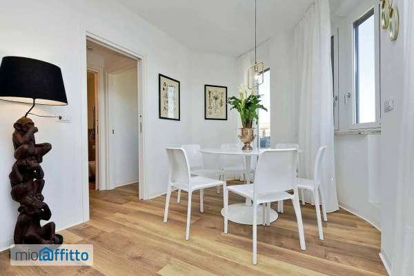 [ita] Disponibile da: 16 08 2026 Mensilità minime prenotabili: 1 Per prenotare l'annuncio clicca sul bottone "prenota Qui" [eng] Available from: 16 08 2026 Minimum months rental: 1 to book the listing click on the button 'book here' [ita] l'edificio la Flavia Design City Suites è stato costruito nel 1949 su progetto dell'architetto Angelo di Castro ed è stato totalmente ristrutturato alla fine del 2019; ha 8 piani e 2 ascensori e con la sua particolarità architettonica e l'accurata scelta degli arredi la sua luminosità e modernità lo rendono un luogo speciale per il vostro soggiorno a Roma. Si trova in una delle zone più autentiche della capitale e vicino al quartiere Trevi. La stazione Termini, Via Veneto, Piazza Barberini e il Teatro dell'opera di Roma sono raggiungibili a piedi in soli 10 minuti. Via Flavia si trova nel quartiere di Sallustiano, situato nella parte settentrionale del Quirinale, uno dei sette colli su cui fu fondata Roma. Questo quartiere può essere diviso in due aree, una tra via Piave e via Piemonte-Via Salandra, con una moderata densità di popolazione, e la restante fino a via Bissolati, praticamente disabitata e con un'alta concentrazione di uffici e ministeri. Vicino a via Flavia si trova la bellissima piazza Fiume, dove si trovano meravigliosi palazzi del passato insieme a edifici di architettura moderna. Vicino a Piazza Fiume si trova Porta Pia, una bellissima struttura realizzata da Michelangelo Buonarroti, divenuta famosa nel 1870, quando ci fu la battaglia tra le truppe papali e quelle italiane, che segnò la fine del potere papale e il ritorno di Roma all'italia. Via Flavia accoglie l'innovazione unita alla storia. Ricca di diversi ristoranti dove si possono gustare i piatti tipici della capitale. La zona è collegata da autobus e metropolitana, si trova a pochi metri da Via Veneto, Piazza Della Repubblica e Via Nazionale. La zona è ricca di ristoranti, bar, locali e negozi, infatti c'è l'imbarazzo della scelta. Nella zona sono presenti diversi supermercati; coop in via Venti Settembre aperto fino alle 20. 30 e anche il Supermercato Locale pam sempre in via Venti Settembre aperto fino alle 22. 00. Il cinema più vicino si trova in Corso d'italia 107, il Cinema Europa. La Farmacia Gellini si trova in Corso d'italia n. 100 ed è aperta 24 ore al giorno. Bellissimo, stravagante ed accogliente trilocale di 90 mq sito al 7° piano (con due ascensori) , openspace , soggiorno pranzo, angolo cottura, due camere da letto, due bagni e un fantastico terrazzo. La proprietà si apre sulla zona giorno caratterizzata da una meravigliosa vista attraverso porte e finestre in vetro con uscita sul terrazzo e una splendida vista su Roma e dintorni. Il terrazzo è arredato con tavolo, sedie, sdraio, divano l'impianto di riscaldamento e condizionamento è centralizzato con fancoil a soffitto con termostato ambiente individuale. L'edificio è stato costruito nel 1949 su progetto dell'architetto Angelo di Castro ed è stato totalmente ristrutturato nel fine 2019. La particolarità architettonica e un'accurata scelta degli arredi ne esaltano la luminosità e la modernità. [eng] Contact us to receive a quote for monthly rentals! The building la Flavia Design City Suites was built in 1949 and designed by Architect Angelo di Castro and was totally renovated in late 2019, it has 8 floors and 2 elevators and with its architectural particularity and careful choice of furniture its brightness and modernism makes it a special place for your stay in Ro...