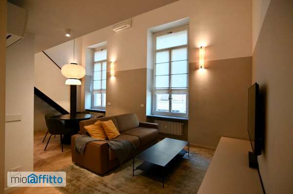 Nel cuore di Torino, in Via Roma, una delle vie più prestigiose della città, proponiamo in affitto un alloggio completamente ristrutturato e arredato con gusto, perfetto per chi cerca comfort, stile e una posizione centrale senza compromessi. Sito al primo piano, servito da ascensore, di un elegante stabile signorile dotato di servizio portineria, dista soli 250 metri dalla stazione di Porta Nuova e della relativa fermata della metropolitana di Torino. L’appartamento è stato oggetto di una ristrutturazione completa, curata nei minimi dettagli con materiali e finiture di alto livello, che coniugano eleganza e funzionalità. L’ingresso si apre su un ampio e luminoso living open space, progettato per offrire un ambiente intimo e accogliente, con zona conversazione e zona pranzo caratterizzata da una cucina contemporanea perfettamente integrata nell’ambiente. Questo piano si completa di un bagno, con antibagno adibito a zona lavanderia con armadiatura su misura. Una scala interna in ferro conduce al piano soppalcato, con affaccio diretto sul soggiorno, dove si trova la camera da letto matrimoniale e un secondo bagno privato a servizio. L’appartamento è dotato di aria condizionata, gli infissi sono in legno e doppi vetri, e il riscaldamento è centralizzato.