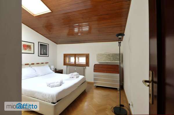Large 1 bedroom, panoramic apartment of about 55 sqm located on the top floor (with elevator, 6 steps) of a historic building belonging to the Bentivoglio family, the noble family who made the city great during the Renaissance. The apartment is located in the heart of Bolognas historic city centre, just a short walk from Piazza Maggiore, the Teatro Comunale, and Viale Indipendenza, the main street in Bologna. Guests have access to a fully equipped kitchen and are provided with bed linens and towels. Upon arrival, our staff will be waiting at the apartment to explain how everything works and to hand over the keys. During your stay, our staff is available to address any requests or concerns. The apartment is completely outfitted with custom-made furniture, where the warm colors of wood predominate, which characterize the parquet and the ceilings finishing. The apartment overlooks Piazza San Martino, giving the tenants spectacular views of the roofs and porticoes that characterize the historic city centre of Bologna. The finishes are excellent and include air conditioning (split in the bedroom), central heating, wooden door frames, and double glazed windows for excellent thermal and soundproofing. The furnishings were chosen to create an extremely pleasant and relaxing atmosphere, an apartment with all the modern comforts. The entrance opens onto a spacious anteroom equipped with a large coat closet. In the closet, you can find a single folding cot (80 x 190 cm). The open floor plan kitchen, with walnut cabinets can be hidden thanks to the sliding doors. It is fully equipped with an electric oven (with microwave function) and a dishwasher. Behind the kitchen is the living room, furnished with a beautiful round dining table in black marble for 4 guests. A low cabinet separates the relaxation area, which is furnished with a comfortable leather sofa and a single sofa bed, placed in front of a 26 flat-screen tv, inserted in a special niche. The bedrooms double bed (160 x 200 cm) overlooks the rooftops of Via Goito, the center of Bolognas ancient red light district and now famous for its many restaurants. To store your things, there is a large wardrobe with 3 doors and a large container under the bed. Finally, there is the bathroom that was decorated in an unmistakable Italian style with precious marble and Venetian plaster. It has a crystal shower stall and a washing machine. Amenities: - adsl Internet with Wi-Fi - Washing machine, drying rack, iron, and ironing board - Central heating (active from 15 10 to 15 04) and air conditioning with a split in the bedroom - Electric boiler - Electric windows and shutters The rental price includes the initial and the final cleaning, the rent, Italian taxes (television and garbage) and doesn't cover the condominium expenses ( 80 per month), Wifi internet ( 40 per month) and bills (electricity, gas and water). Regarding the bills, a forfait of 100 will be paid monthly. Only if you exceed this forfait, you would have to pay the difference. No refunds will be due if the total bill is less than the monthly forfait. If your stay includes some days of the subsequent month, the forfait for the bills will be calculated pro rata. Area: The apartment is located in the historic city center, in one of the Bentivoglio familys buildings. It is also close to Bolognas main piazza, Piazza Maggiore, which is surrounded by the most important buildings of the city. The oldest building is Palazzo Podestà, which dates back to ...