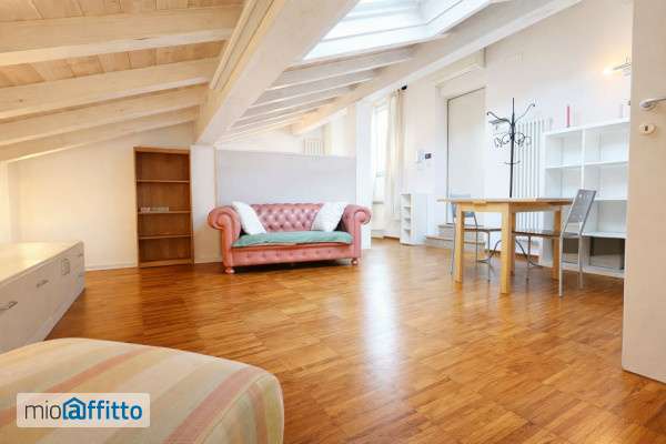 Elegante e luminoso monolocale mansardato in centro storico, adiacenze Teatro Ariosto. Al terzo piano senza ascensore è parzialmente suddiviso tra la zona giorno e la zona notte da una parete attrezzata. Dispone di un piccolo balcone e della possibilità di parcheggio biciclette nell'androne interno. Riscaldamento autonomo a caldaia e condizionatore. Tetto in legno coibentato. Palazzo in ottime condizioni, ben abitato e tranquillo. Spese condominiali 50 € mensili che comprendono anche il consumo di acqua. Si preferisce un solo inquilino con contratto a tempo indeterminato sara' data priorita' alle richieste che indicheranno il profilo familiare e lavorativo.