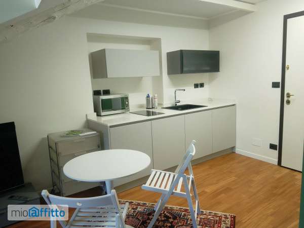 Monolocale nuovo, signorile, arredato - solo uso transitorio (studenti o trasfertisti - no residenza). Palazzo d'epoca, con ascensore, signorile, ristrutturato recentemente nelle parti comuni. Monolocale mansardato recentemente ristrutturato, con ampia zona giorno, angolo cottura completamente accessoriato con lavastoviglie e lavatrice, angolo relax con poltrona e scrittoio, zona notte con letto a 2 piazze, armadio, e bagno con doccia "walk-in", l'immobile è dotato di aria condizionata, videocitofono e porta blindata. Adiacente al monolocale c'è un locale soffitta a uso cabina armadio. Completa la proprietà una cantina al piano interrato. Solo studenti, contratto annuale 12 mesi