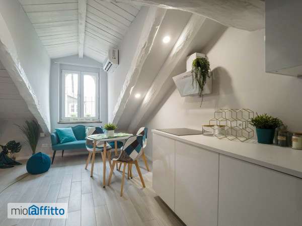 In elegante stabile d'epoca situato in posizione centrale, comoda a tutti i principali servizi, si propone in affitto un grazioso appartamento mansardato completamente ristrutturato e arredato. L'immobile si trova al quarto e ultimo piano e gode di un piacevole affaccio esterno. Gli spazi interni sono ben distribuiti e comprendono una luminosa zona giorno con cucina a vista completamente attrezzata e dotata di tutti gli elettrodomestici, inclusa la lavatrice, una confortevole zona notte e un ampio bagno. Il riscaldamento è autonomo tramite pompa di calore caldo freddo e gli infissi sono in doppio vetro, elementi che garantiscono comfort abitativo ed efficienza energetica. La proprietà valuta contratti di locazione transitoria. L'appartamento è disponibile da subito. Classe Energetica: d