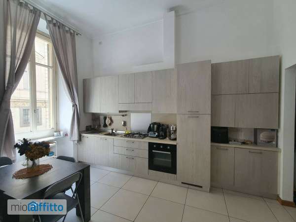 Centro in Via Bogino n°18 in splendido palazzo d'epoca signorile con portineria (Palazzo Barbera) al primo piano con ascensore, ampio monolocale di lusso stile loft, composto da ingresso, angolo cucina, bagno, ripostiglio e con accesso tramite scala interna un piccolo soppalco adibito a zona notte. Al piano seminterrato un locale uso cantina. Parzialmente arredato di parete cucina, divano letto e arredo bagno con lavatrice. Posizione centrale, comodissima a tutti i sevizi e trasporti.