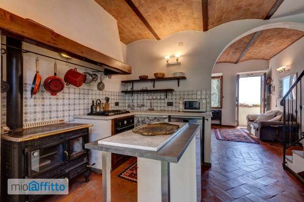 Un Rifugio di Charme ed Eleganza nel Cuore del Chianti – Splendida Vista Panoramica sulle Colline Toscane libero da subito per 6 12 mesi 4 Livelli – Circa 130 mq – Giardino Privato Immersa nelle incantevoli colline del Chianti, in posizione strategica tra Montespertoli, San Casciano, Tavernelle e Certaldo, e a soli 30 minuti da Firenze, proponiamo in affitto questa affascinante casa indipendente situata all’interno del borgo medievale di Lucardo Alto, con ingresso privato e totale riservatezza. Una proprietà di rara autenticità, sapientemente restaurata, che unisce il fascino storico dell’architettura toscana tradizionale a finiture artistiche e comfort moderni, offrendo splendide viste aperte sui vigneti e sulla valle circostante. Al piano principale si trova una luminosa zona cucina e pranzo con ampia cucina abitabile e area living. La cucina è completamente attrezzata con cucina economica, forno, piano cottura a 4 fornelli, lavastoviglie e microonde. Ambienti accoglienti e ben proporzionati, ideali sia per ricevere ospiti sia per la vita quotidiana. Il piano è comodamente accessibile in auto, facilitando il carico e scarico della spesa direttamente in casa. Completa il livello un elegante bagno di cortesia, impreziosito da dettagli decorativi artigianali che conferiscono unicità e carattere. Il primo piano ospita due spaziose camere matrimoniali, entrambe molto luminose e con piacevoli affacci panoramici, servite da un bagno moderno con doccia. Le camere sono dotate di aria condizionata. Tutti i bagni della casa sono dotati di doppie prese elettriche compatibili sia con spine americane che italiane — una caratteristica rara e particolarmente apprezzata. Il livello mansardato offre uno spazio intimo e suggestivo, attualmente adibito ad area yoga relax, dotato di ampia vasca e pratici spazi contenitivi. Anche la mansarda è climatizzata. Un ambiente riservato e versatile, perfetto come suite padronale o come raffinato spazio benessere. Al piano seminterrato si trova una caratteristica taverna con soffitto a volta e grande camino a parete, oggi utilizzata come ulteriore zona living. Originariamente garage, questo ambiente è stato trasformato in uno spazio caldo e accogliente, con ampie porte vetrate che garantiscono accesso diretto al giardino, creando una perfetta continuità tra interno ed esterno. Al medesimo livello è presente anche la lavatrice, comodamente collocata in un’area dedicata. Caratteristiche principali: Tetto completamente nuovo Riscaldamento a pavimento Zanzariere Impianti aggiornati Pannelli solari Aria condizionata nelle camere e in mansarda Cucina completamente attrezzata Lavatrice All’Esterno, la proprietà è completata da un giardino privato disposto su tre livelli, arricchito da una pergola e da spazi ideali per pranzi all’aperto, momenti di relax e convivialità, il tutto con vista panoramica aperta sulle colline del Chianti.