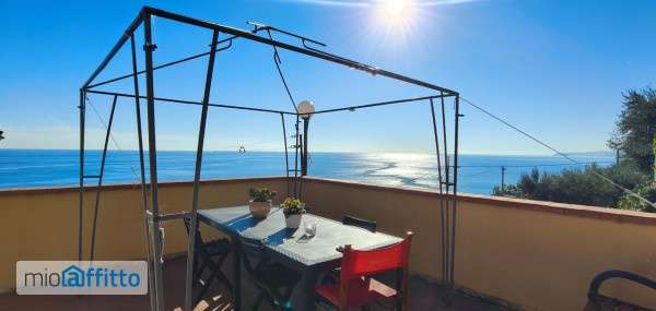 Appartamento in villa con vista mare unica -- finalpia (700 m dal mare) Locazione turistica per 12 mesi, eventualmente rinnovabili. Piano superiore di una splendida villa con ingresso indipendente, vista mare incredibile e spazi esterni ideali per vivere tutto l'anno in totale tranquillità. L'appartamento, luminoso e curato, è composto da: Soggiorno con angolo cottura, caratterizzato da travi a vista e finestra con affaccio sul mare; Terrazzo vivibile con vista mare mozzafiato, perfetto per cene all'aperto o momenti di relax; Due camere da letto; Bagno moderno e funzionale; Giardino privato, ideale per chi desidera uno spazio verde fruibile anche per animali domestici; Barbecue in muratura a disposizione degli ospiti. La proprietà si trova in posizione soleggiata a 700 metri dal mare, raggiungibili a piedi e a circa 1 km dal centro di Finalpia; a parte, possibilità di terreno privato da adibire a due posti auto. Condizioni economiche e requisiti: Pagamento del canone mensile; Cauzione di 3 mensilità; Referenze e possesso di immobili saranno considerati titoli preferenziali ai fini della selezione degli inquilini. Opportunità unica per chi cerca un'abitazione di charme, con ampi spazi esterni e un panorama davvero impareggiabile.