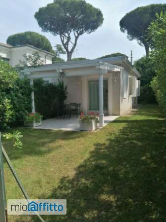 Porzione di villetta indipendente. Bifamiliare, 1 matrimoniale, 1 due letti, 1 bagno con vasca, cucinotto, zona giorno, pergolato con zona pranzo, circondata da giardino. Zona di pregio, centrale e silenziosa. Climatizzatore, riscaldamento autonomo, impianto di irrigazione automatico. Possibilità di parcheggio in giardino privato.