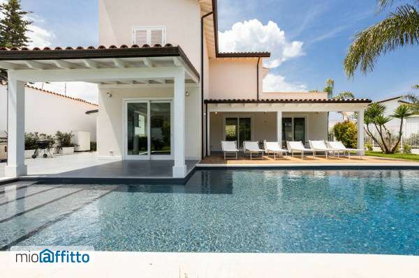 In una delle zone più esclusive e tranquille di Mondello, in Via Castelforte, sorge un’elegante villa unifamiliare di circa 196 mq, immersa in un rigoglioso giardino privato di 700 mq con piscina e vasca idromassaggio. La proprietà, arredata e corredata con gusto contemporaneo, offre ambienti raffinati e confortevoli, perfetti per chi desidera vivere in un’oasi di pace a pochi minuti dal mare. L’ingresso si apre su un ampio salone doppio, luminoso e accogliente, con grandi vetrate panoramiche che si affacciano sul giardino e sulla piscina, creando una continuità armoniosa tra interno ed esterno. Adiacente al salone si trova una cucina a giorno moderna e completamente accessoriata, ideale per momenti conviviali e pranzi in famiglia. Sempre al piano terra si trovano una camera da letto ed un bagno. Una scala elegante conduce al primo piano, interamente dedicato alla zona notte, dove trovano spazio tre camere da letto e due bagni, tutti caratterizzati da finiture di pregio e grande luminosità. All’Esterno, il grande giardino privato incornicia la piscina e la vasca idromassaggio, perfette per rilassarsi e godere delle belle giornate siciliane. A completare la proprietà vi sono anche due comodi posti auto e una zona barbecue, ideale per cene all’aperto. La villa, nuova e moderna, dispone di impianto di riscaldamento autonomo, climatizzatori, infissi in pvc con vetro camera, e di ogni comfort necessario per garantire un’elevata qualità abitativa. Si propone in locazione ad uso transitorio per la durata di 12 mesi, con pagamento semestrale anticipato. Una dimora moderna ed elegante, immersa nel verde e nella tranquillità, perfetta per chi desidera vivere Mondello con stile e comfort. Prezzo su richiesta, contattaci per avere maggiori informazioni.